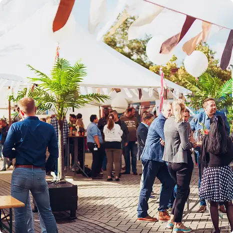 We denken graag met je mee over de perfecte invulling van jullie bedrijfsfeest in Rotterdam. De add-ons hierboven zijn slechts voorbeelden – want eigenlijk is alles mogelijk. Van foodtrucks tot festival, van borrel tot bedrijfsfeest.